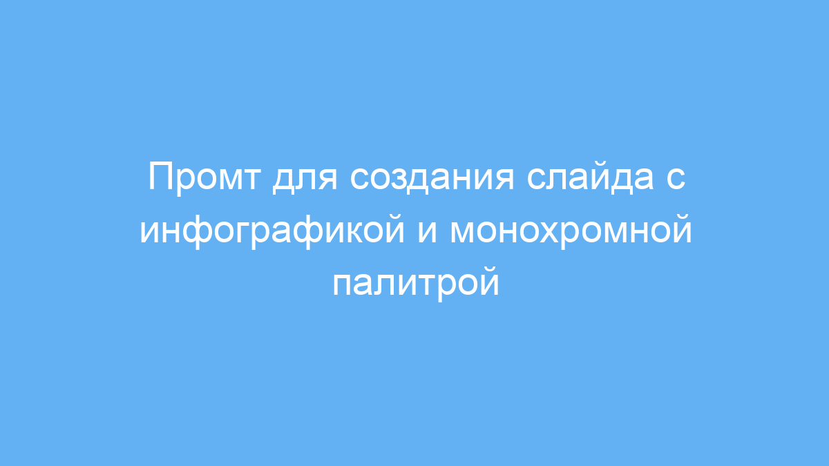 Создай слайд для презентации с инфографикой, используя данные: [текст]. Цветовая палитра — монохромная, с акцентом на цвет: [акцент]. |