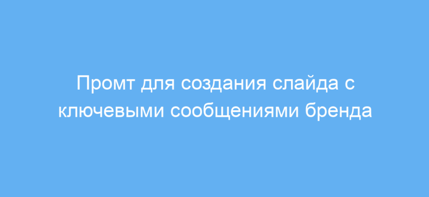 Рекомендуется четко обозначить ключевые сообщения бренда перед использованием промта, чтобы нейросеть могла их грамотно интегрировать в слайд.