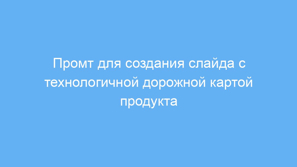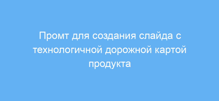 Этот промт предназначен для менеджеров проектов, маркетологов и дизайнеров, которые хотят быстро получить визуальное представление плана развития продукта в виде инфографики. Он помогает создать слайд с дорожной картой, оформленный в современном техно-стиле, что делает презентацию более привлекательной и понятной.