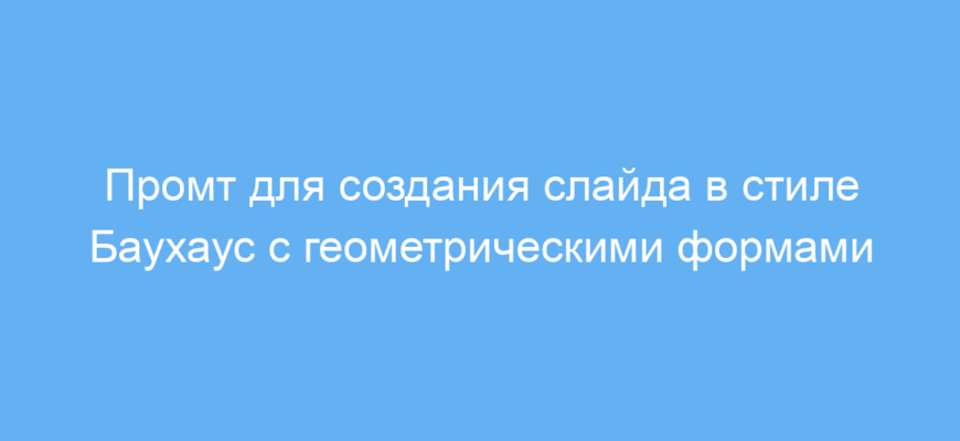 В основе промта лежит описание темы слайда, к которому нейронная сеть добавляет необходимые геометрические формы и контрастные цвета, характерные для стиля Баухаус. Так получается яркий и современный слайд, готовый к использованию.