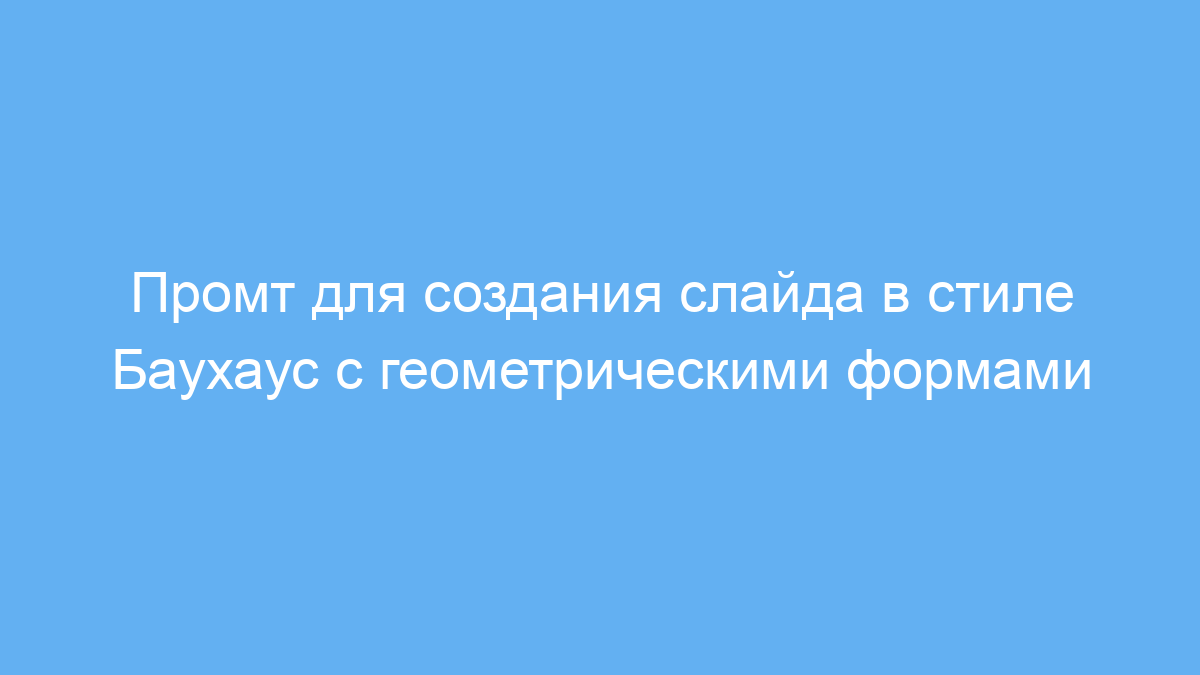 Этот промт предназначен для тех, кто хочет быстро и качественно создать слайд для презентации в уникальном стиле Баухаус. Он используется дизайнерами, преподавателями, студентами и маркетологами, которым требуется лаконичный и оригинальный визуальный материал.