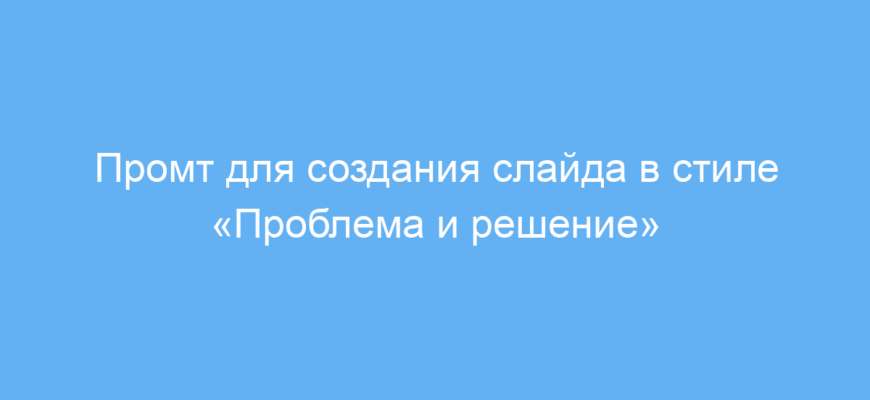 Использование данного промта значительно облегчает создание понятных и привлекательных слайдов «Проблема и решение». Он помогает структурировать информацию и визуально разделить ключевые моменты, что экономит время и улучшает восприятие материала.