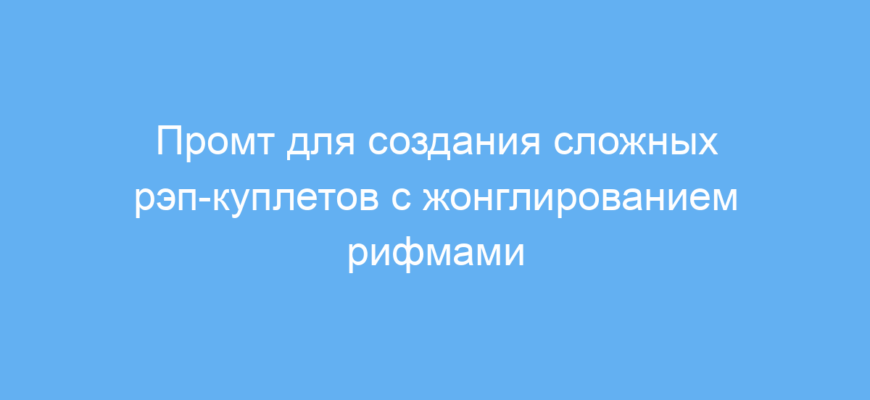 В основе работы промта — формирование куплета с использованием «жонглирования рифмами»: многоуровневыми, внутренними, многослоговыми и неожиданными. Он просит нейросеть не только создать текст, но и обратить внимание на фонетику, игру слов и метафоры, что повышает глубину и качество результата.