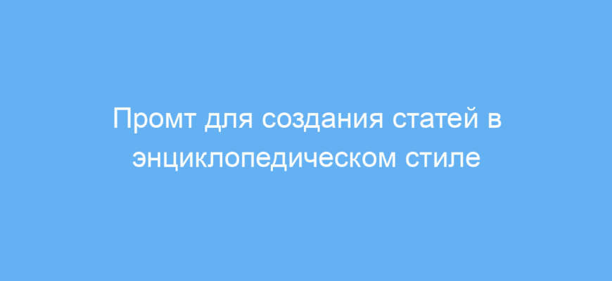 Использование этого промта значительно ускоряет создание качественных энциклопедических статей. Он систематизирует процесс написания, обеспечивает единый формат и экономит время на сбор информации и структурирование. В итоге вы получаете информативный и унифицированный текст, готовый для публикации или дальнейшей доработки.