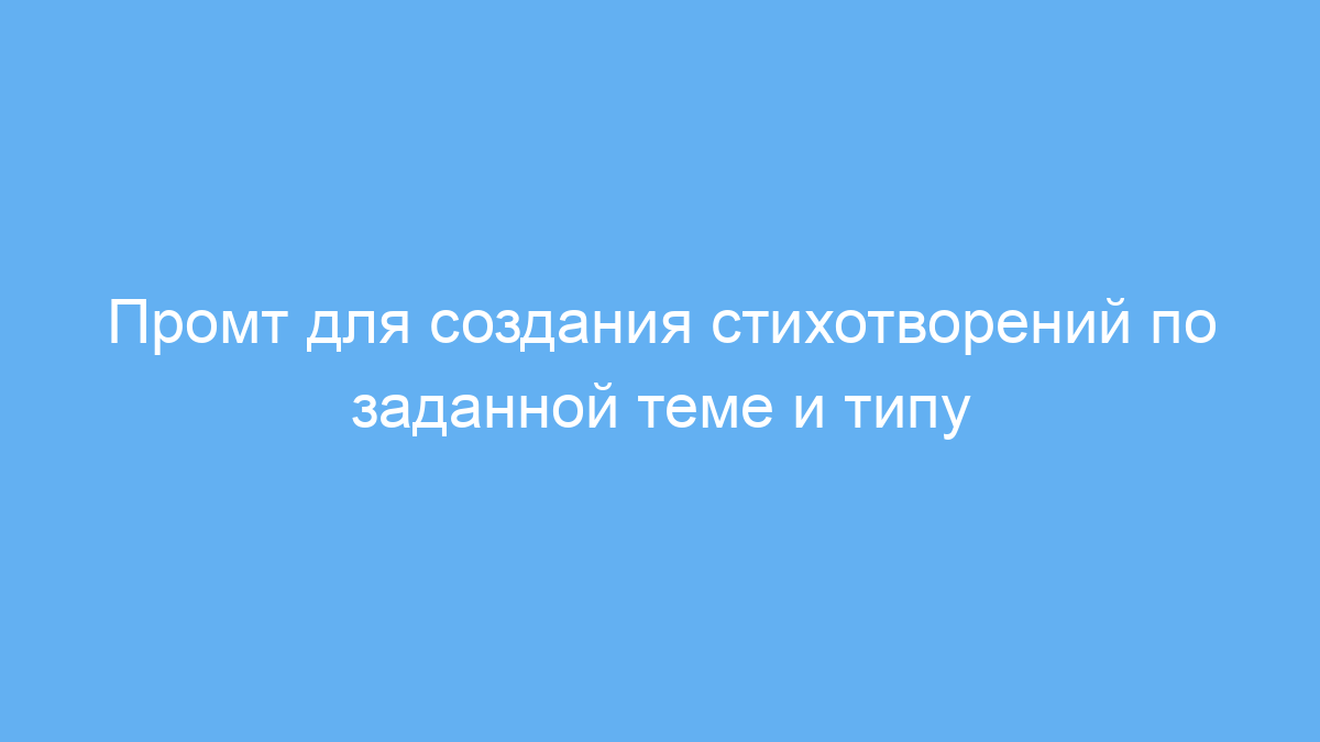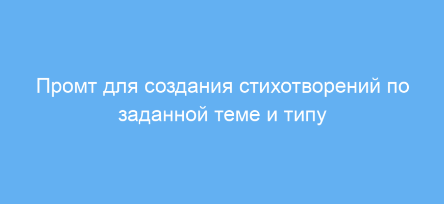 Этот промт экономит ваше время и усилия на творческом процессе, помогая быстро получить стихотворение нужного типа и на нужную тему при помощи нейросети. Он подходит для любой аудитории и помогает сделать общение с ИИ более плодотворным и удобным.
