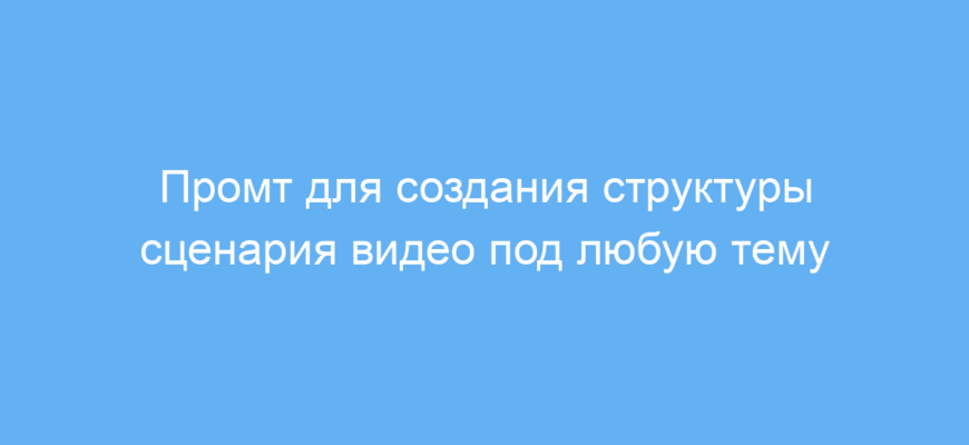 Чтобы использовать промт, достаточно указать тему видео, его целевую аудиторию и желаемую длительность – нейросеть сгенерирует структуру без полного текста, что облегчает последующую работу над сценарным материалом.