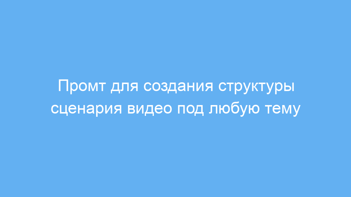 Этот промт предназначен для тех, кто создает видеоконтент и хочет быстро получить чёткую и логичную структуру сценария. Он полезен блогерам, маркетологам, преподавателям и всем, кто планирует съемку видео, но испытывает трудности с организацией материала.