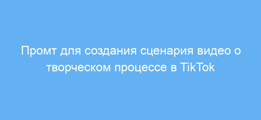 Пример 2. Разработка сценария для промо-видео творческой команды TikTok. В этом случае промт помогает подчеркнуть не только процесс создания, но и командную динамику, показывая реальный креативный путь и неожиданные ситуации на съёмках.