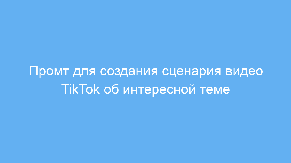 Проблема, которую решает промт, — это необходимость написать короткий, цепляющий и структурированный сценарий, который удержит внимание пользователя на первых секундах и подведёт к активному взаимодействию с видео (лайк, подписка, комментарий). Он помогает систематизировать мысли, оформить ключевые моменты и продумать визуальные вставки.