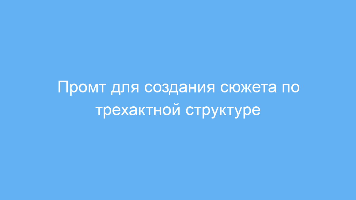 Этот промт предназначен для сценаристов, писателей, копирайтеров и студентов, которые хотят быстро и структурированно сформировать сюжет с классической трехактной драматургией. Используя такой промт, вы экономите время на разработку сложного сценария, получая готовую основу для рассказа, фильма или другого нарративного произведения.