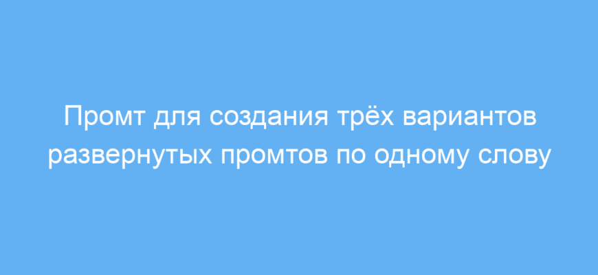 Этот промт экономит большое количество времени при создании качественных, детализированных и разнообразных запросов для генерации изображений нейросетями. Он помогает раскрыть потенциал простого слова и превратить его в полноценное художественное описание, повышая точность и выразительность визуального результата.