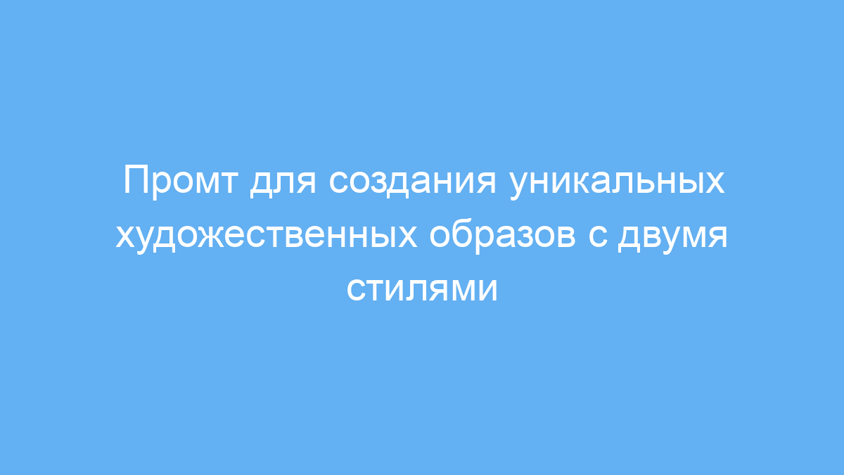 Этот промт существенно облегчает создание уникальных художественных образов с комбинированием любых двух стилей из списка. Он помогает быстро получить четкое задание для нейросети, что сокращает время на генерацию и повышает качество конечного изображения. Такой подход удобен как для профессионалов, так и для любителей, ищущих креативные идеи и решения.