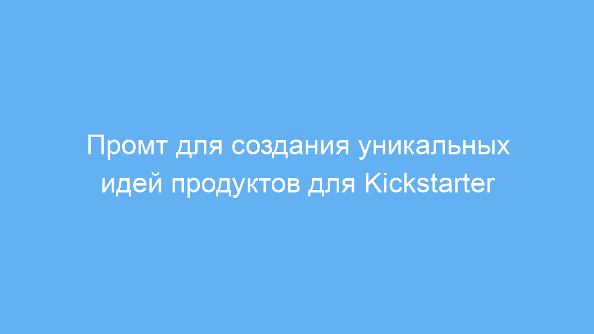 Этот промт полезен всем, кто хочет придумать оригинальные идеи продуктов для платформы Kickstarter. Он помогает генерировать инновационные и привлекательные концепции, которых пока нет на рынке. Это особенно важно для стартаперов, маркетологов и креативщиков, стремящихся создавать уникальные проекты с высокой вероятностью успеха.