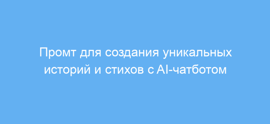 В основе работы промта лежит интерактивное общение: чатбот задает релевантные вопросы для уточнения деталей истории или стиха и использует полученную информацию для создания текста, который подходит по стилю, тематике и жанру.