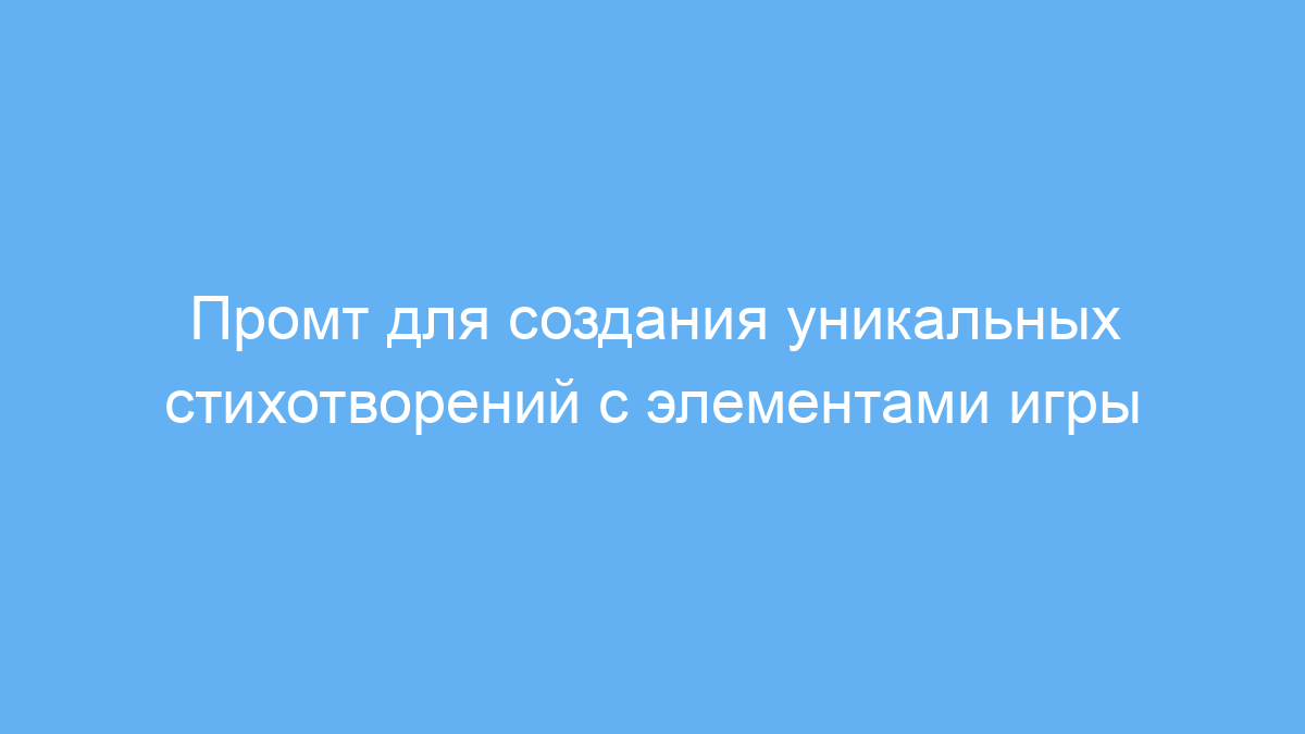 Этот промт создан для тех, кто хочет генерировать уникальные стихотворения с творческим подходом и элементами игры. Он будет полезен поэтам, преподавателям литературы, студентам и всем, кто любит экспериментировать с художественным словом. Промт помогает создавать новые поэтические произведения, комбинируя стили разных авторов и создавая оригинальные тексты, которые никогда ранее не были написаны.