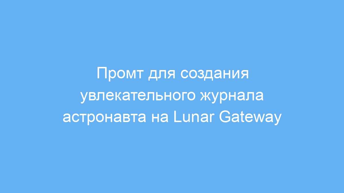 Этот промт предназначен для писателей, сценаристов, педагогов и разработчиков контента, которые хотят создать живую и подробную историю о жизни и работе в космосе. Он помогает смоделировать ежедневные впечатления, научные эксперименты и взаимодействия членов экипажа космической станции Lunar Gateway, раскрывая характеры, конфликты и личностный рост.