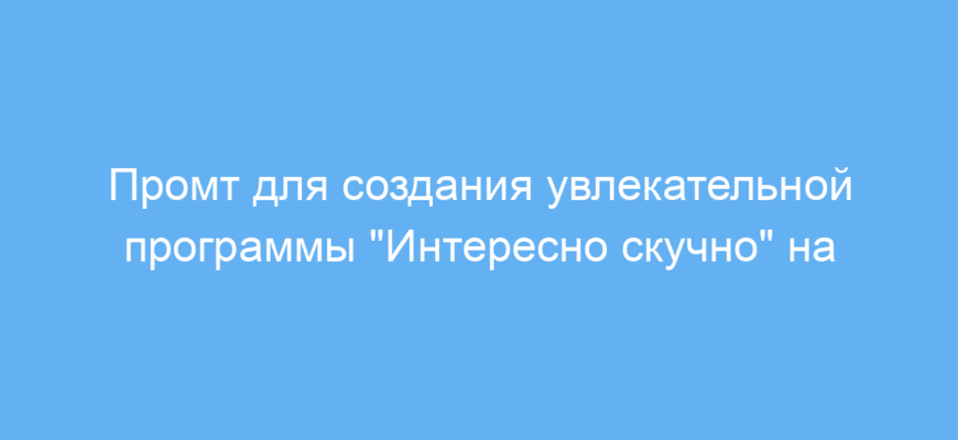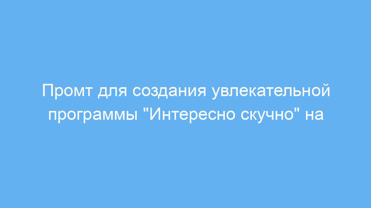 Как работает промт: пользователь выбирает одну из трёх опций — преобразование скучных слов и фраз в более яркие, рассказ «интересно скучного» анекдота или «интересно скучного» факта. Нейросеть формирует ответы в виде рамки, что создаёт эффект увлекательной программы. Такой подход позволяет динамично менять подачу контента и держать читателя в лёгком интересе.