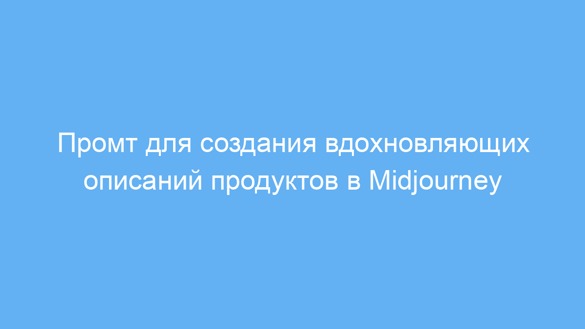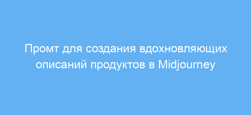 Этот промт предназначен для маркетологов, фотографов, дизайнеров и создателей контента, занимающихся электронной коммерцией. Он помогает автоматически генерировать детализированные и атмосферные описания для съемки товаров с помощью нейросети Midjourney. Это решает проблему создания ярких визуальных сценариев, которые подчеркивают особенности продуктов и помогают выделить их на фоне конкурентов.