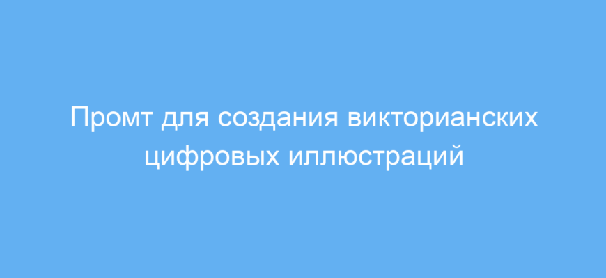 Этот промт создан для пользователей нейросетей, которые хотят получить цифровые изображения в стиле Викторианской эпохи. Он подходит художникам, дизайнерам, маркетологам и всем, кто интересуется винтажной эстетикой XIX века. Использование данного промта помогает быстро формировать качественные иллюстрации с характерными для викторианского стиля элементами — это экономит время и усилия при создании оригинальных визуалов.
