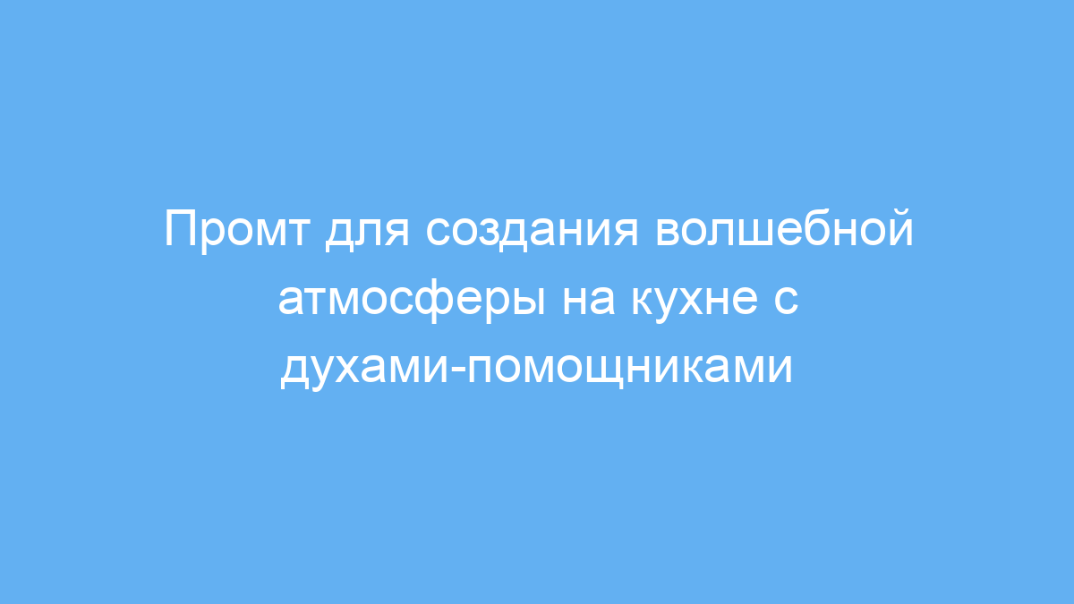 Этот промт предназначен для пользователей нейросетей, которым нужно создать живописное и атмосферное описание кухни с волшебными духами-помощниками. Это отлично подойдёт артистам, писателям, контент-мейкерам и всем, кто хочет добавить сказочности в свои тексты или визуальные проекты. Благодаря этому промту можно быстро получить красочные и эмоциональные описания, которые оживляют обстановку и создают особое настроение.
