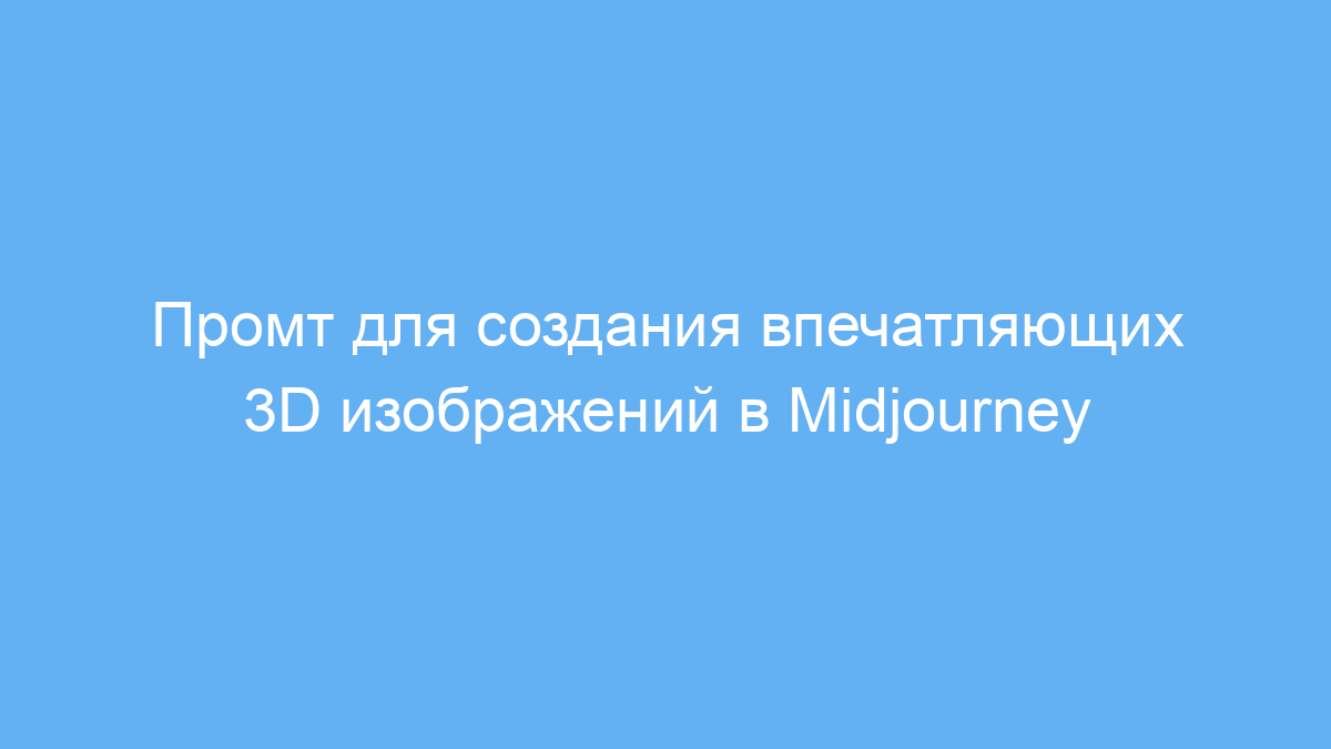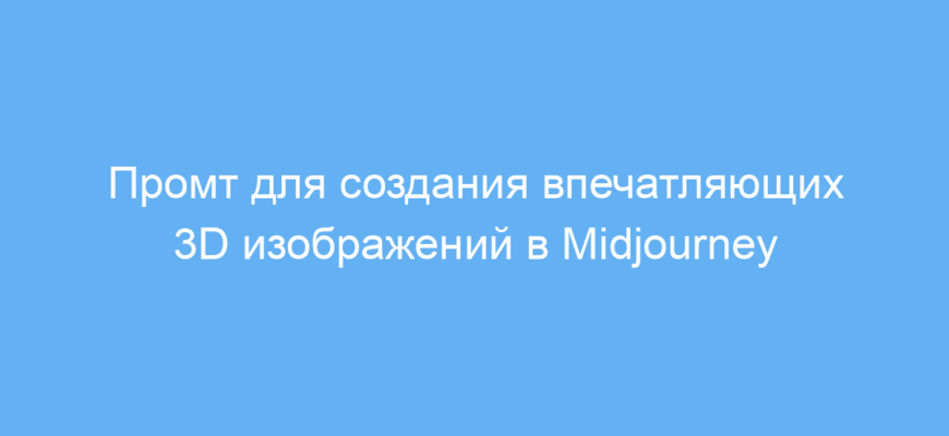Использование этого промта значительно упрощает работу с Midjourney для создания сложных и красивых 3D изображений в разных стилях. Вы получаете готовую структуру запроса, которая гарантирует правильное понимание нейросетью задачи и более качественные визуальные результаты без дополнительных усилий.