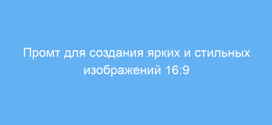 Этот промт предназначен для пользователей нейросетей, которые хотят быстро получить качественные, выразительные и современные изображения с соотношением сторон 16:9. Он помогает создавать визуальный контент, который сразу привлекает внимание и подходит для презентаций, обложек, баннеров и социальных сетей.