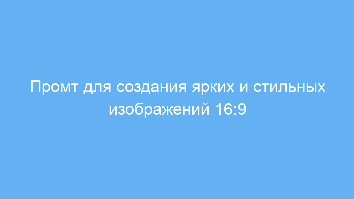 Используя этот промт, вы быстро и без лишних усилий создадите современное и привлекательное изображение в широком формате 16:9. Он помогает лучше сформулировать задачу для нейросети, экономя время на правки и поиски нужного стиля. Это отличное решение для визуального контента в бизнесе, маркетинге и творчестве.