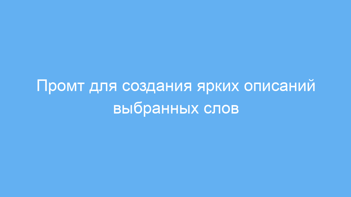 Этот промт даёт простое и быстрое решение задачи создания ярких, визуально насыщенных описаний. Он помогает оживить тексты, делает их запоминающимися и привлекательными, экономя ваше время на поисках вдохновения.