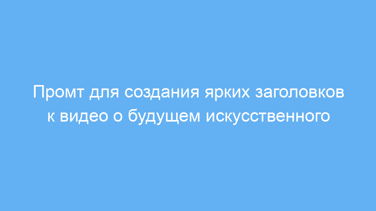 Промт дает нейросети конкретное задание — сгенерировать 10 коротких и привлекательных заголовков, которые заинтригуют зрителя. Пользователь указывает тему, а модель подбирает сильные слова и образы, усиливающие интерес к ролику.