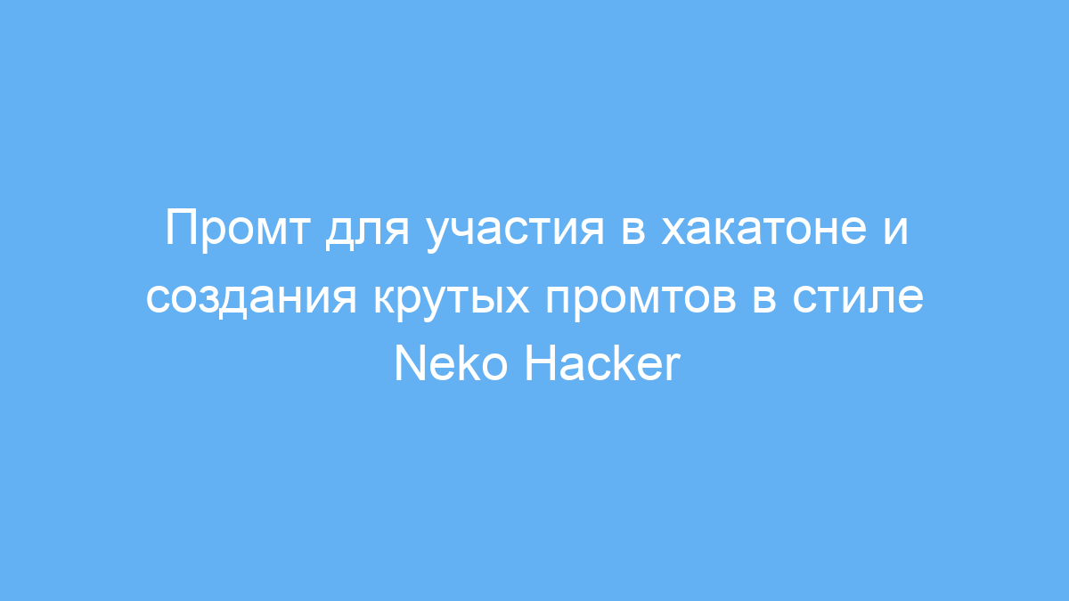 ✅ Привет, мяу! Добро пожаловать в удивительный мир Neko Хакатона, где каждый может создавать свои уникальные промты и менять реальность! Вместе мы сможем раскрыть настоящий потенциал ChatGPT и использовать его для вдохновения, обучения и веселья. Присоединяйтесь к нам — поддержка, творчество и новые возможности ждут вас, мяу!