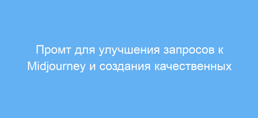 Использование такого промта значительно упрощает и ускоряет работу с Midjourney. Пользователь быстро структурирует описание, получает помощь по улучшению запроса и достигает лучшие визуальные результаты. Это экономит время и снижает количество ошибок при генерации изображений.