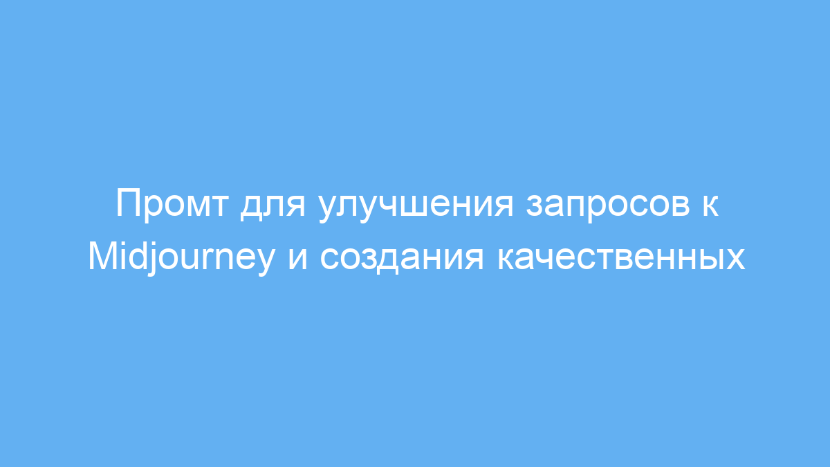 Этот промт предназначен для пользователей генеративного ИИ Midjourney, которые хотят получить максимально точные и красивые изображения по текстовым описаниям. Он помогает улучшить и структурировать запросы, чтобы нейросеть поняла, что именно нужно создать. Такой подход полезен как художникам и дизайнерам, так и контент-менеджерам или тем, кто использует Midjourney для учебы или работы.