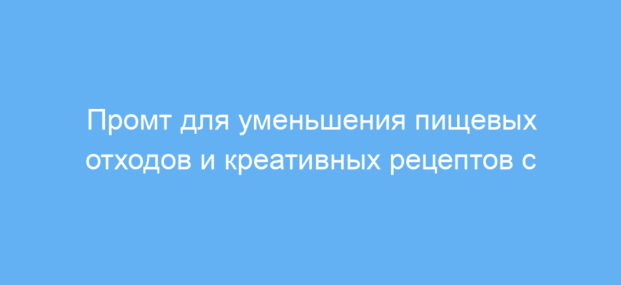 Используя этот промт, вы не только находите идеи для кулинарии из остатков и неидеальных продуктов, но и учитесь снижать пищевые отходы. Это помогает экономить деньги, уменьшать нагрузку на природу и повышать креативность на кухне.