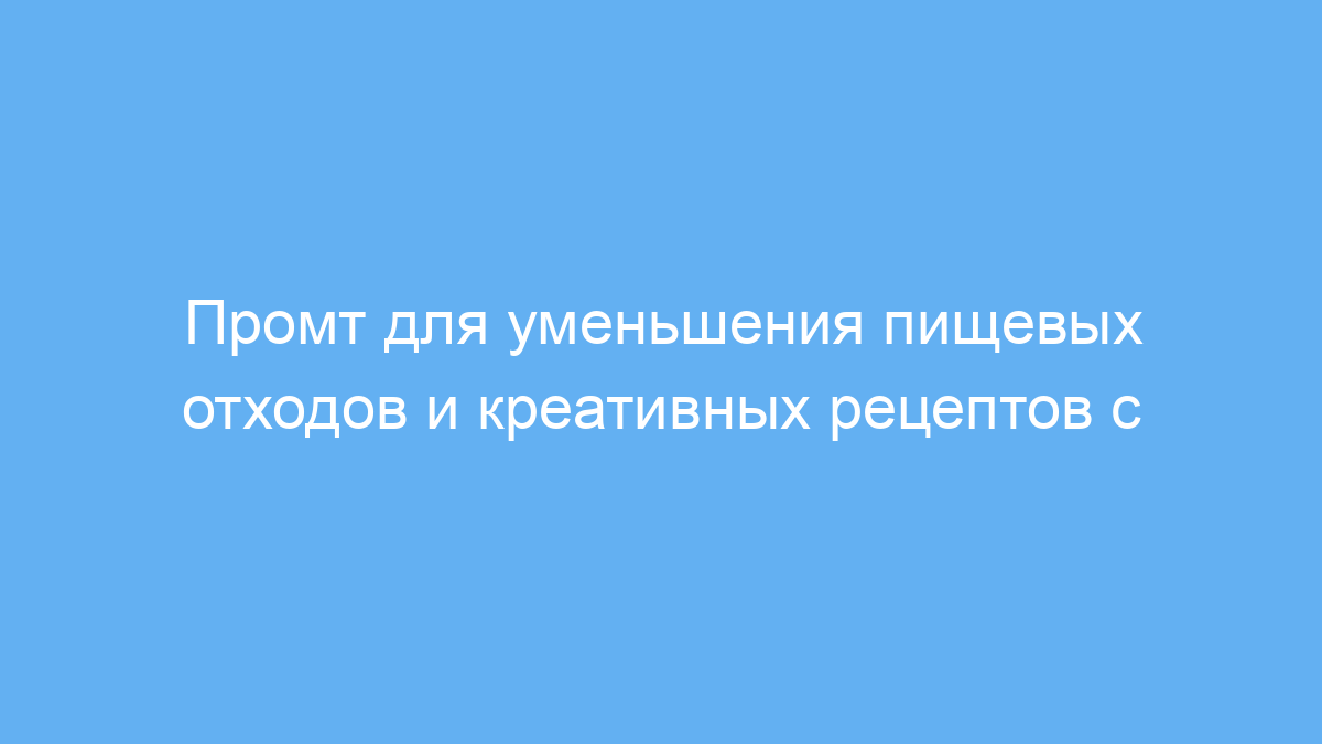 Проблема, которую решает промт, — слишком частое выбрасывание еды и непродуманное использование продуктов. С его помощью вы получаете не просто рецепты, а рекомендации, которые показательно демонстрируют, как экономить ресурсы, используя остатки и неидеальные овощи или фрукты.