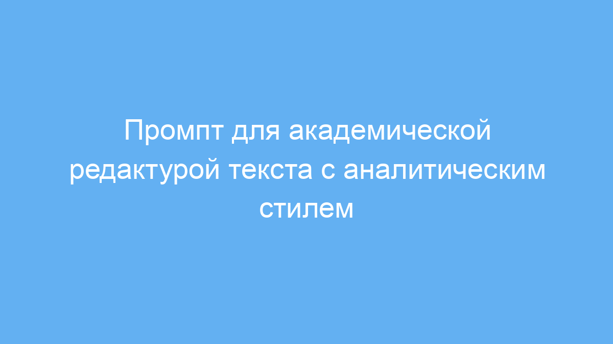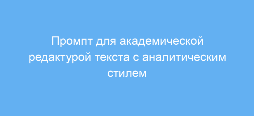 Промпт применяется для редактирования больших текстов, требующих научного стиля и глубокого анализа.
