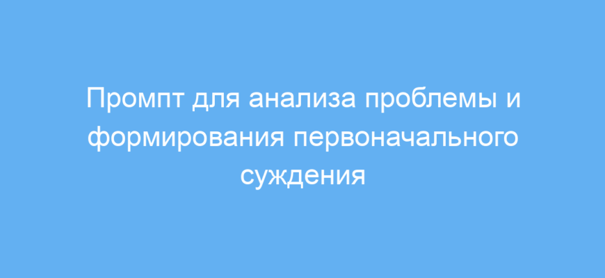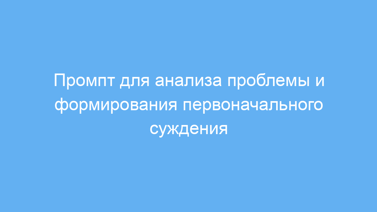 Проблемы, которые решает этот промпт, связаны с формированием первых выводов по сложным вопросам, где требуется не только суждение, но и аргументация, подкрепленная метакогнитивным подходом. Он помогает лучше понять причины и механизмы события или явления, опираясь на базу знаний нейросети и накопленный опыт.