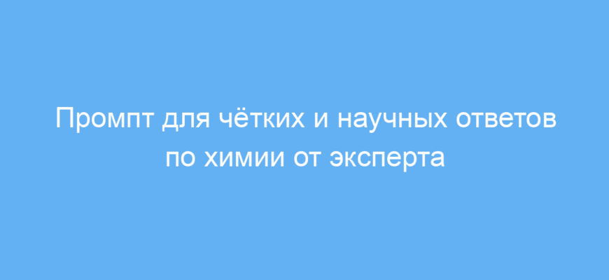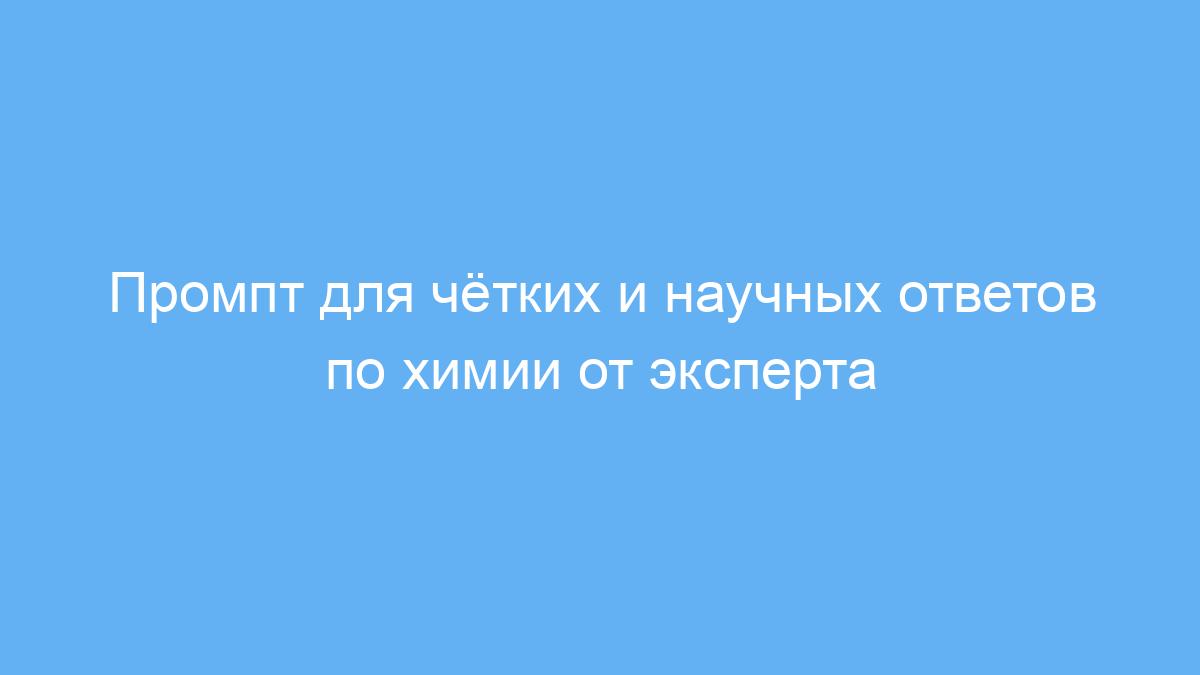 Этот промпт помогает быстро получить структурированные, научно точные и сжатые ответы по химии от нейросети. Таким образом, вы экономите время на поиски и проверку информации, получая готовый справочный материал для учёбы или работы.