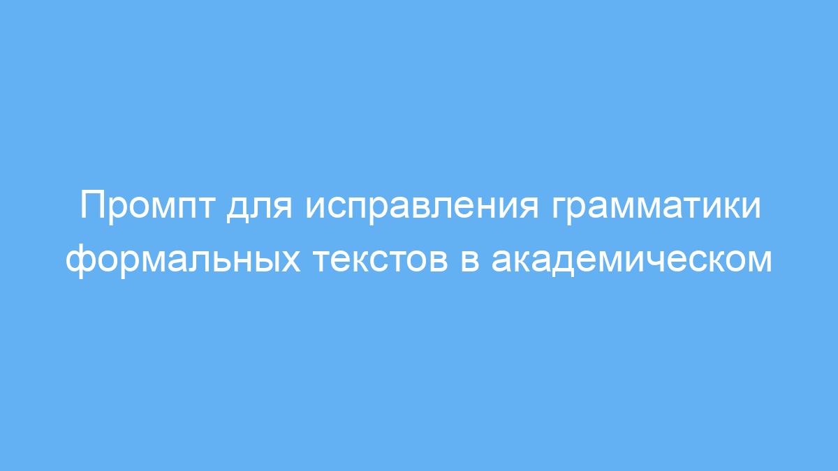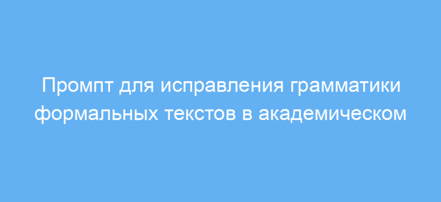 Использование этого промпта значительно экономит время на выверку и исправление грамматических ошибок при подготовке формальных и академических текстов. Вы получаете текст, который соответствует высоким стандартам письменной речи и понятен образованной аудитории.