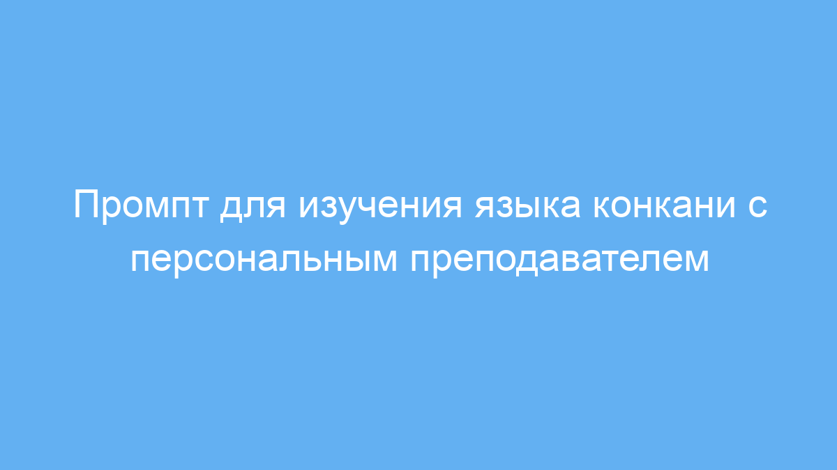 Этот промпт создан для всех, кто хочет эффективно изучать язык конкани с помощью нейросети. Он подойдёт как новичкам, так и продвинутым ученикам, которым нужна помощь с грамматикой, произношением, словарным запасом и устной практикой. Использование промпта решает проблему нехватки персонального преподавателя и позволяет заниматься языком в удобное время.