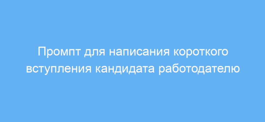Этот промпт создан для соискателей, которые хотят быстро и эффективно подготовить короткое вступление к сопроводительному письму или сообщению работодателю. Он помогает сформулировать текст, который подчеркнёт косвенные, но важные аспекты вашего опыта, делая ваше представление более привлекательным и релевантным для вакансии.