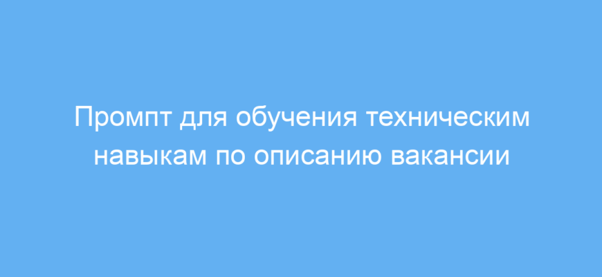 Этот промпт позволяет структурированно и эффективно изучать технические навыки, определённые из вакансий, лично под ваши цели и уровень подготовки. Такой поэтапный подход экономит время и помогает освоить необходимые умения последовательно, без лишней информации.