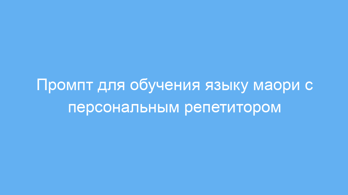 Данный промпт предназначен для тех, кто хочет изучать язык маори с помощью нейросети. Это могут быть ученики всех уровней — от начинающих, которые только знакомятся с базовыми грамматическими правилами и произношением, до продвинутых пользователей, интересующихся литературой и культурными аспектами языка. Промпт помогает решить важные задачи: структурировать обучение, получить поддержку в переводах и практиковать язык в интерактивных формах.