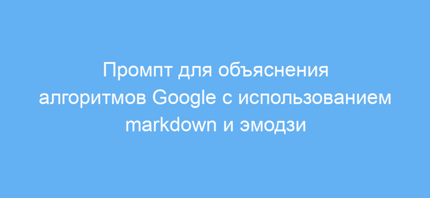 Принцип работы прост: промпт задаёт чёткую структуру ответа с подробным описанием каждого алгоритма, рекомендует использовать Markdown-синтаксис для заголовков и списков, а также вставлять эмодзи, что делает материал живым и привлекательным для восприятия.