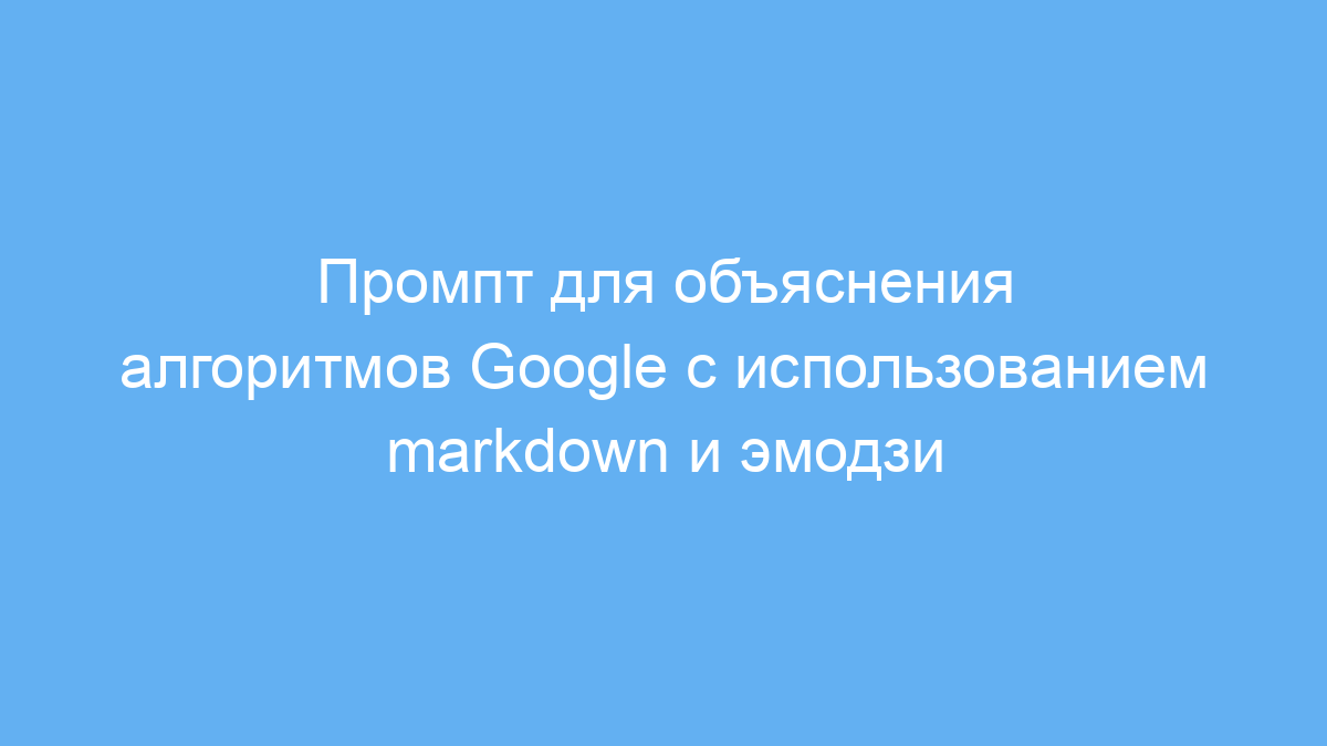 Этот промпт позволяет создавать чёткие, структурированные и визуально привлекательные объяснения сложных алгоритмов Google. Благодаря переменным и рекомендациям его можно легко адаптировать под разные аудитории, что экономит время и повысит качество коммуникации.