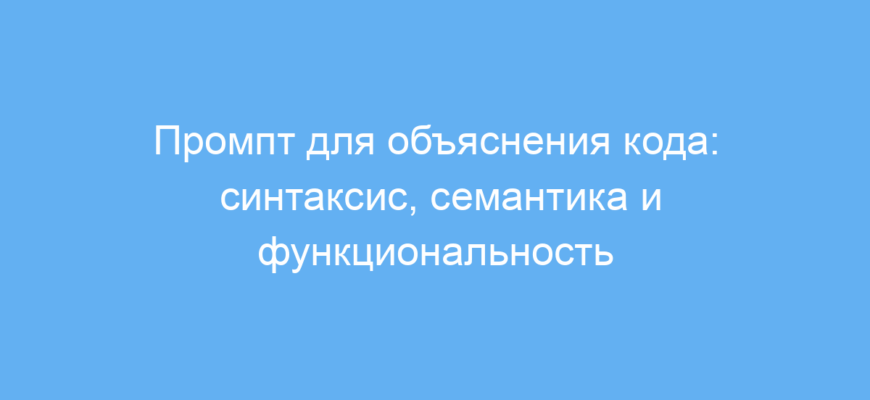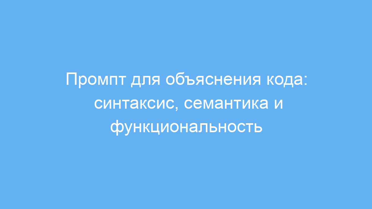 Этот промпт предназначен для пользователей нейросетей, которым важно быстро и понятно разобраться в программном коде. Он помогает объяснить структуру (синтаксис), смысл (семантику) и работу (функциональность) любого фрагмента кода. Такой инструмент полезен разработчикам, студентам, преподавателям и всем, кто изучает программирование или анализирует чужие программы.