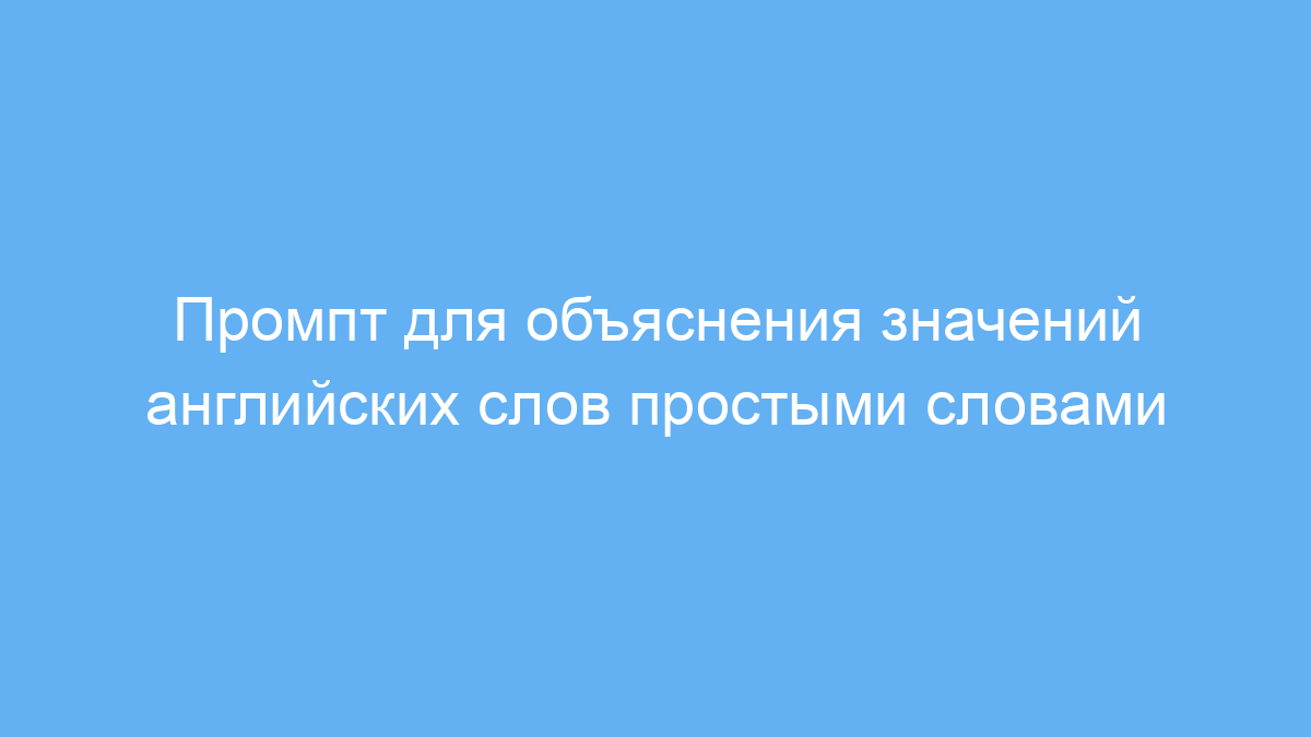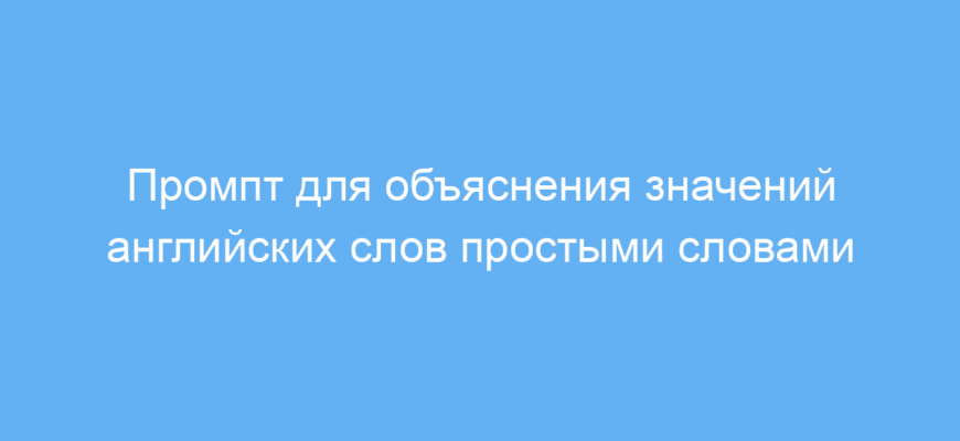 Этот промпт помогает изучающим английский быстро получать простые и понятные объяснения новых слов. Он экономит время на поиски значений и примеров, делая обучение эффективнее и удобнее.