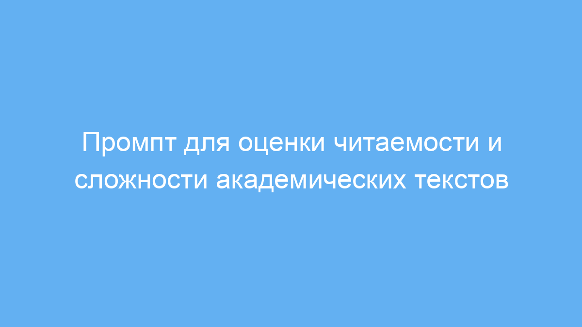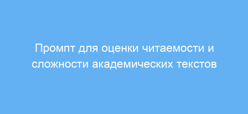 Данный промпт предназначен для исследователей, студентов и авторов, которые хотят оценить читаемость и сложность своих академических текстов. В научной и учебной среде важно, чтобы тексты были понятными и доступными, особенно если речь идет о публикациях или учебных материалах. Промпт помогает определить, насколько текст сложен для восприятия, и предлагает рекомендации по улучшению.