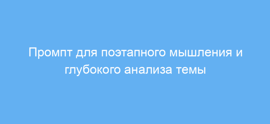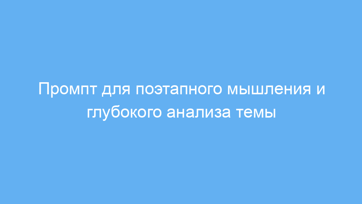 Промпт ускоряет и упрощает процесс глубокого анализа информации. Он подходит для систематизации мыслей по разным темам, помогает последовательно строить рассуждения и получать чёткие выводы. Это экономит время и улучшает качество работы или учёбы.