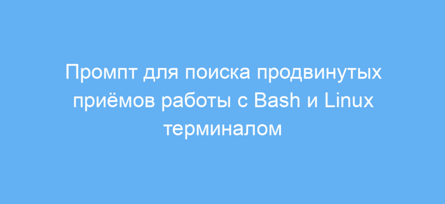 Использование данного промпта позволяет экспертам Bash и Linux обогащать свои знания новыми, ещё не опубликованными приёмами работы. Это экономит время на поиске информации, а также помогает внедрять инновационные методы для повышения продуктивности и удобства взаимодействия с системой.