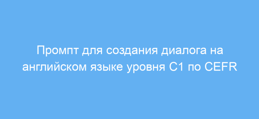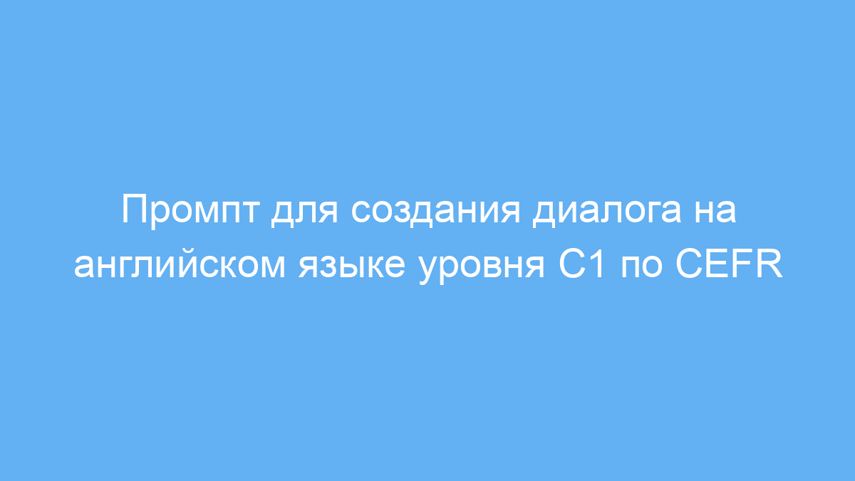 Этот промпт предназначен для преподавателей, репетиторов и студентов, изучающих английский язык как второй язык, особенно на продвинутом уровне C1 по Общеевропейской системе уровней владения иностранным языком (CEFR). С его помощью можно генерировать реалистичные диалоги с использованием нужного грамматического времени и актуальной лексики, включая сленг и идиоматические выражения.